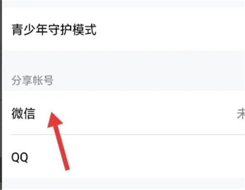 3、在设置选项卡的界面,可以看到“分享账号”选项卡,其中包括微信与QQ。